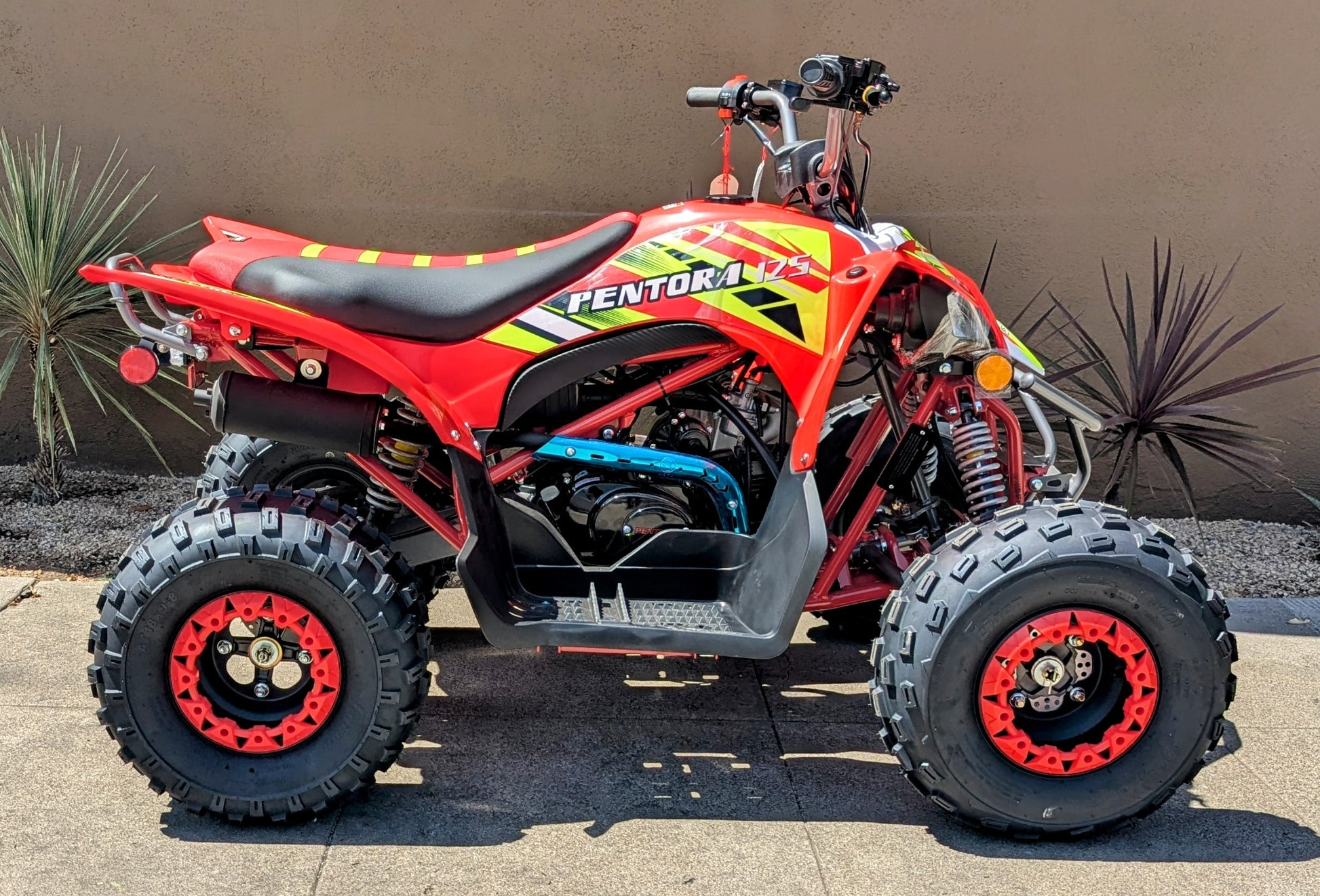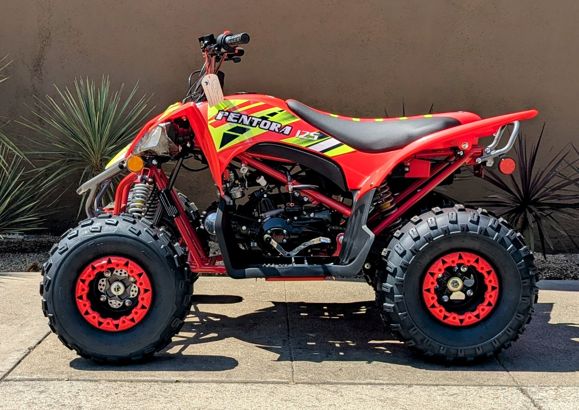 Get ready to rip through the trails in style with the Vitacci Pentora 125cc ATV! Built with performance, safety, and aggressive looks in mind, this youth/adult sport quad is perfect for riders looking for serious fun and off-road confidence.